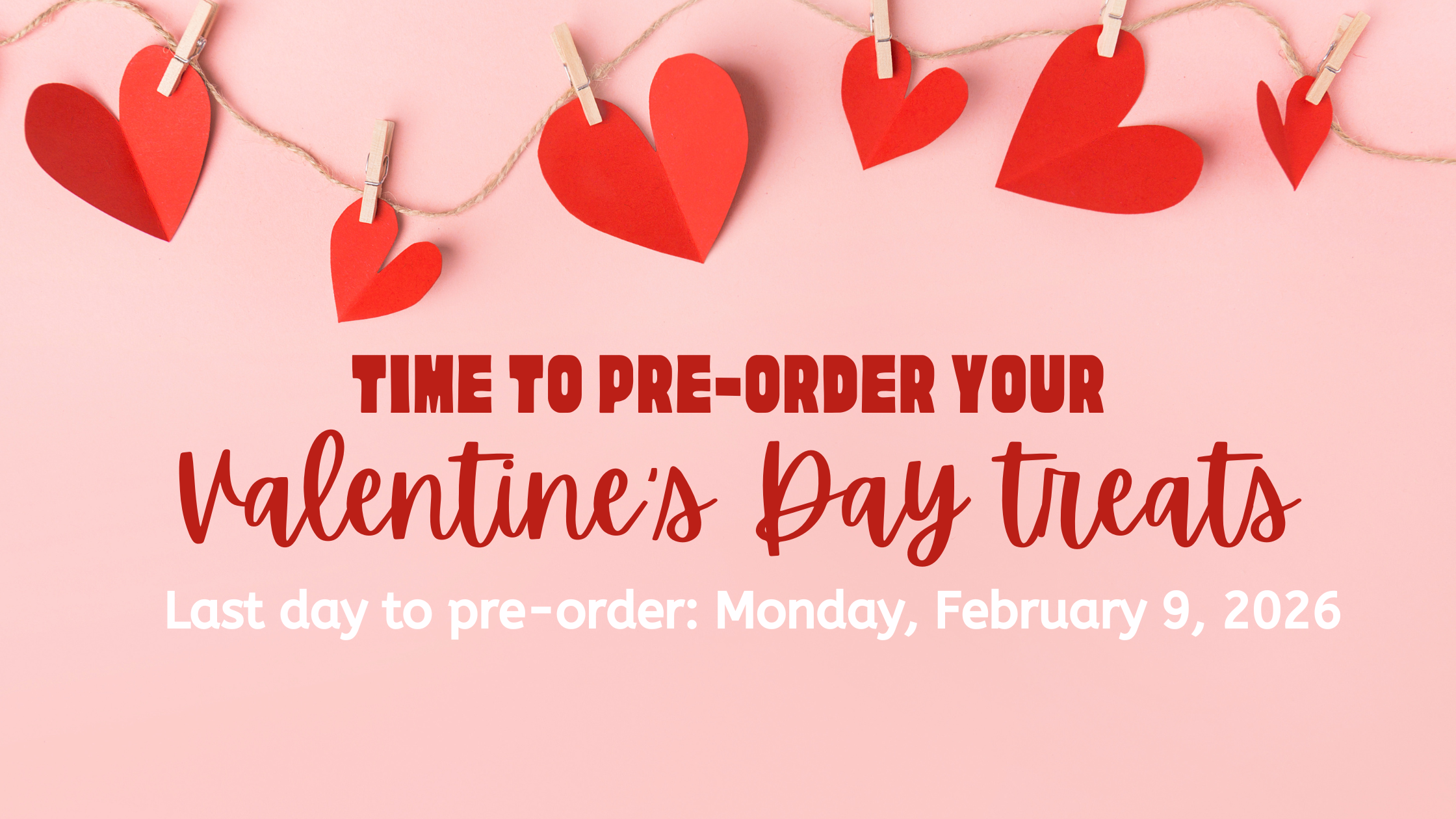 If you are pre-ordering treats for Valentine's Day please use the guideline below for ordering. Any orders with a Valentine's assortment or Valentine's split decision will be prepared and processed according to the timeline below only.