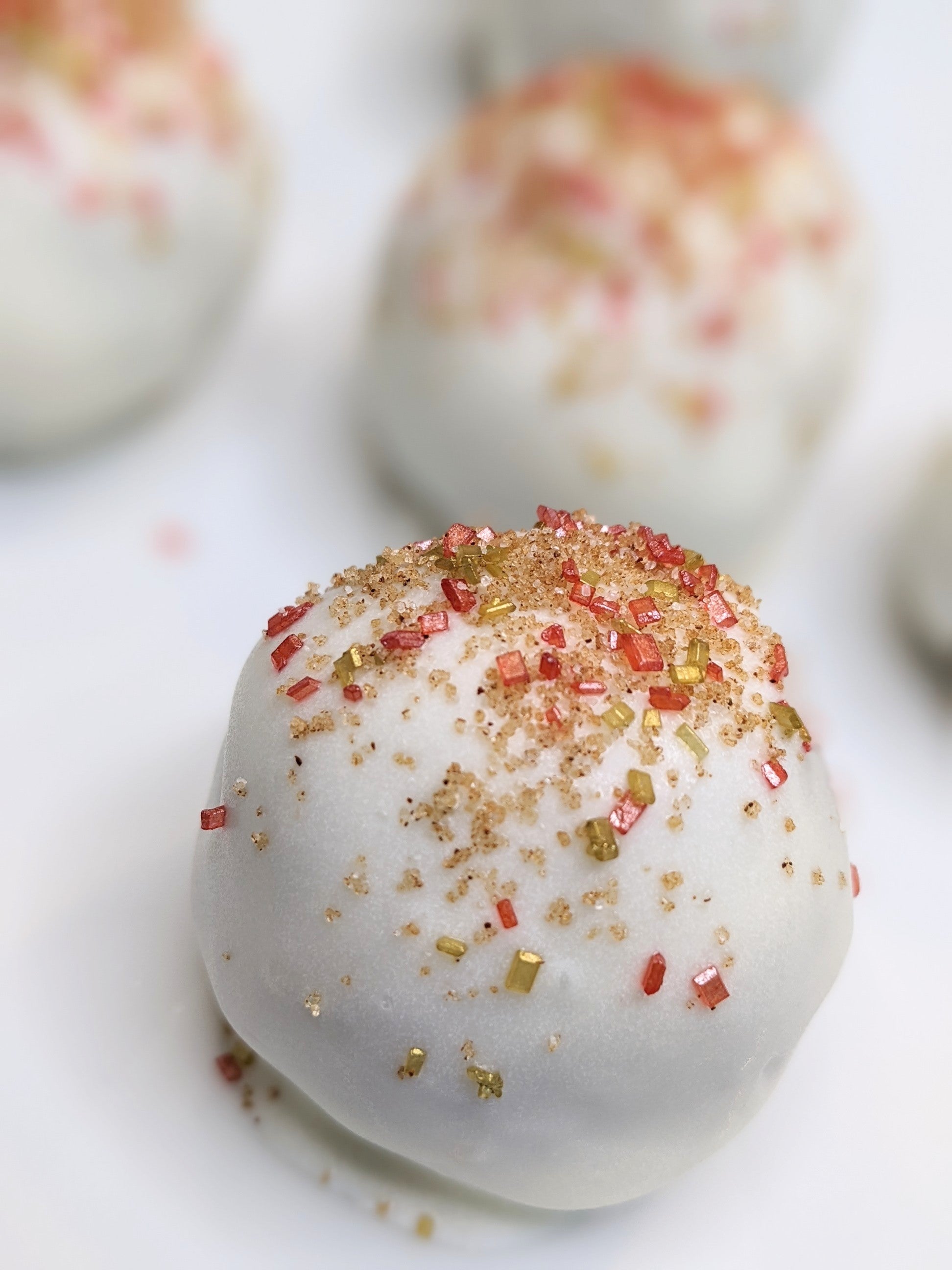 These limited edition Cinnamon Apple Crumb treats feature a cinnamon swirl cake baked with with fresh red delicious apples. Treats are topped with a vanilla candy coating and brown sugar & sprinkles. This fall treat can be served as a delectable dessert or as the perfect pairing to your morning coffee. A dozen sweet treats in your choice of cake balls or cake pops (basically cake balls on a stick!).