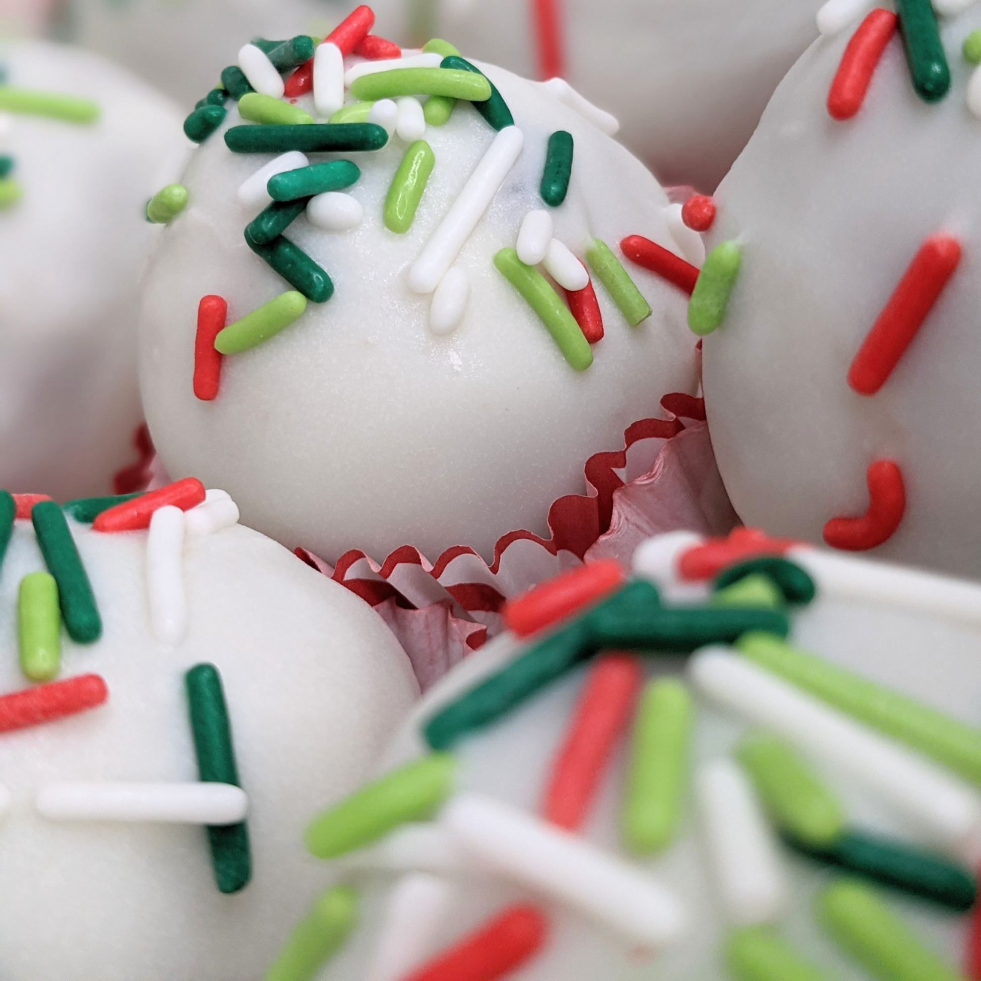 Our limited edition Spice Cake treats are made from a deliciously moist spice cake that's not overly sweet! Coated in vanilla candy coating and topped with sugar sprinkles these treats make an exquisite accompaniment for your holiday parties!